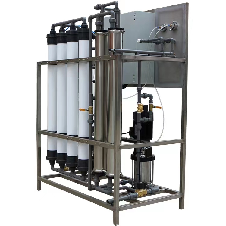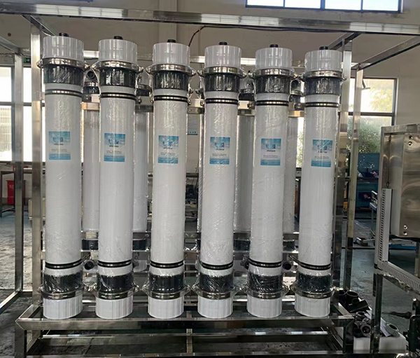 超滤是一种以筛分为分离原理,以压力为推动力的膜分离过程,过滤精度在0.005-0.01μm范围内, 可有效去除水中的微粒、胶体、细菌、热源及高分子有机物质。可广泛应用于物质的分离、浓缩、提纯。超滤过程无相转化,常温下操作,对热敏性物质的分离尤为适宜,并具有良好的耐温、耐酸碱和耐氧化性能,能在60℃ 以下,pH为2-11的条件下长期连续使用。