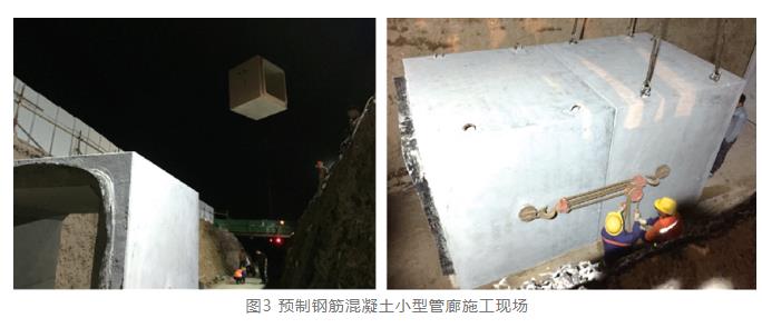 小型管廊设计需要紧密结合现场情况,充分考虑小空间作业等问题。在保证安全质量的前提下,施工工法快速化可有效降低成本,缩短人员、物资、机械等资源的占用周期,同时,最大程度减小对居民生活的影响。小型管廊施工有明挖(现浇与预制),非开挖(顶管、盾构、暗挖)等。目前快速施工法有盖挖支护一体、预制装配式、小型U型盾构等工法。小型管廊内部空间较小,可采用小空间焊接、电缆辅助敷设、空压机吹送光缆等辅助方法安装。