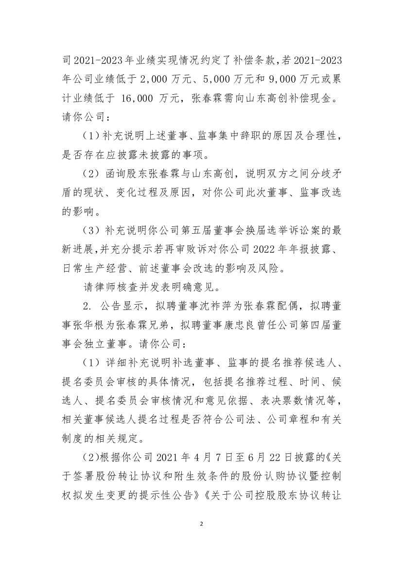 经第五届董事会提名和山东高创提名董事会新任董事名单如下: