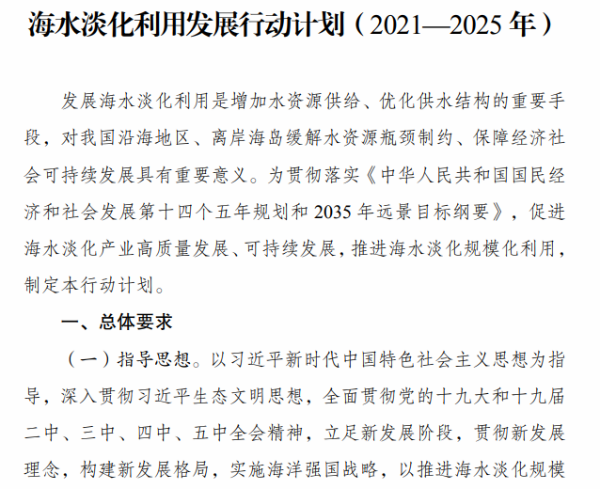 关于关于印发《海水淡化利用发展行动计划(2021—2025年)》的通知,具体内如如下: