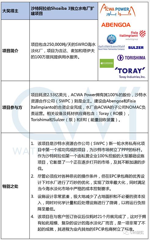 今天揭晓的是年度海水淡化项目大奖和荣誉奖评选结果。