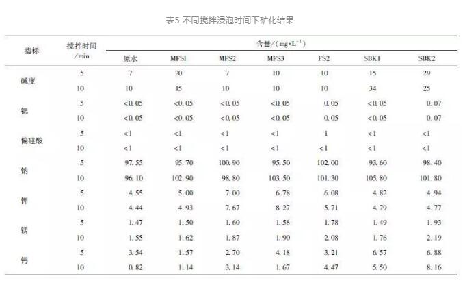(2)搅拌浸泡试验结果得出,搅拌浸泡试验各种元素溶出量较低且差别不大;几种矿化材料在该条件下均无偏硅酸溶出;沸石和扇贝壳有有益元素锶元素溶出。