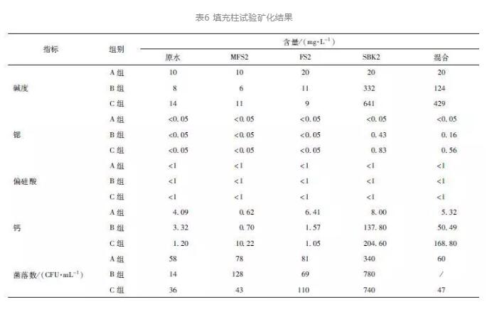 矿化效果如表6所示,混合组为麦饭石组、沸石组和扇贝壳组的混合水。